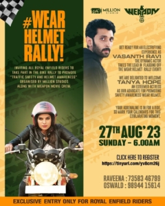 The #WearHelmetRally from Mohammed Sathak College of Engineering to the Tamil Nadu Tourism Development Corporation was successfully organized by our team. With Tanya Hope and Vasanth Ravi as our esteemed chief guests, we successfully raised awareness about helmet safety. Together, we're making our roads safer. Wear a helmet and go on your adventures!