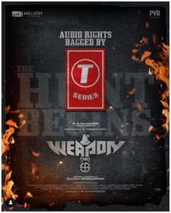 𝐓-𝐒𝐞𝐫𝐢𝐞𝐬 strikes a chord with '𝐖𝐞𝐚𝐩𝐨𝐧' as Official Audio Partner , We are delighted to inform you all that the audio rights of our Movie " #WEAPON " is bagged by T-Series.